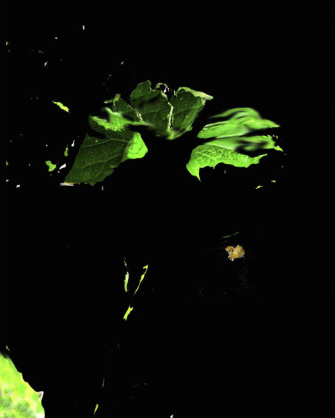 • Asi, sin más ni más, aparece una flor hecha con hojas. La flor hecha con hojas no brota en primavera, pertenece al mundo de la fantasía. Pero, sin embargo, sus hojas son verdes como la primavera.