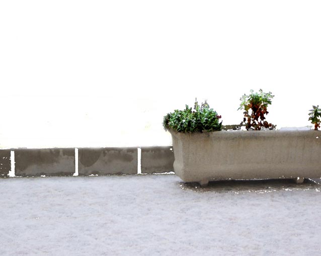 • A veces, caen gotas blancas y ¡duras! del cielo. Golpean de tal manera que hay que ponerse a cubierto. Lastiman. Pueden perforar lo que se ponga por delante y de hecho lo hacen. Sin embargo, hay unas plantas en el patio que da igual lo que les pase. Son espontáneas, sencillas, baratas. Nadie las aprecia: pero dan flores en invierno. |