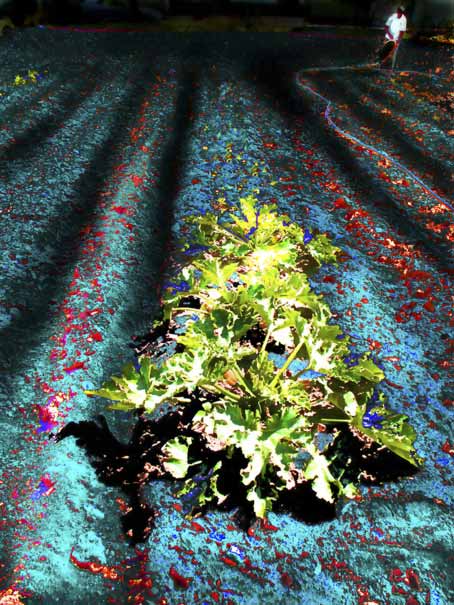 • Mi suegro tiene una huerta un tanto especial. Las plantas son verdes, pero la tierra azul. Azul como el cielo y azul como el mar.